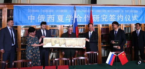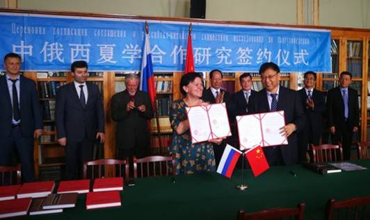 中俄西夏学联合研究所和俄罗斯科学院俄中西夏学联合研究所签订了新一轮合作协议。宁夏回族自治区党委书记石泰峰、中国驻圣彼得堡总领馆副总领事张树友、俄罗斯科学院院士缅希科夫(Vladimir S. Myasnikov)、圣彼得堡市外事局副局长阿布巴卡罗夫(ArbiA. Abubakarov)、俄罗斯科学院东方文献研究所所长波波娃等参加了签约活动。