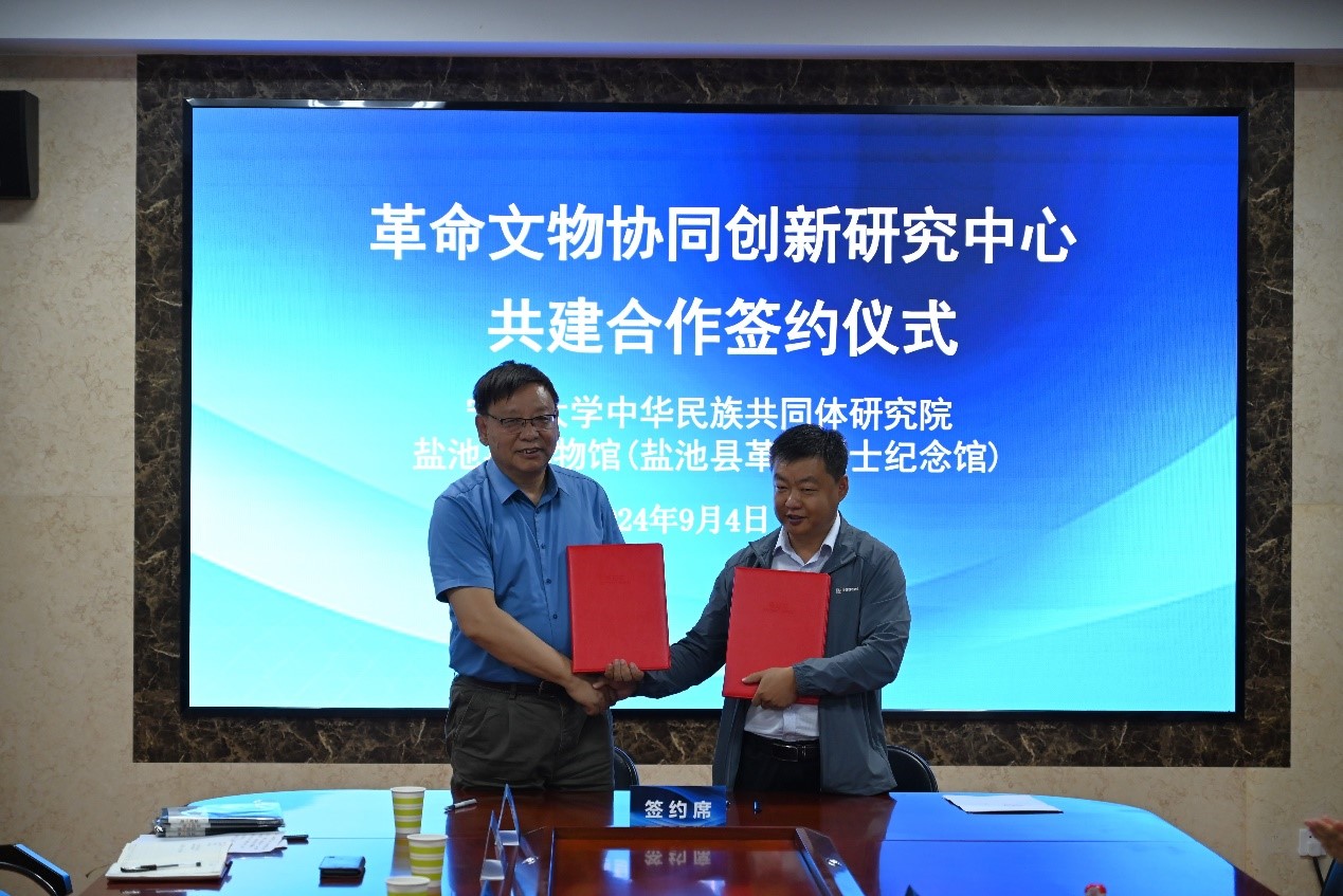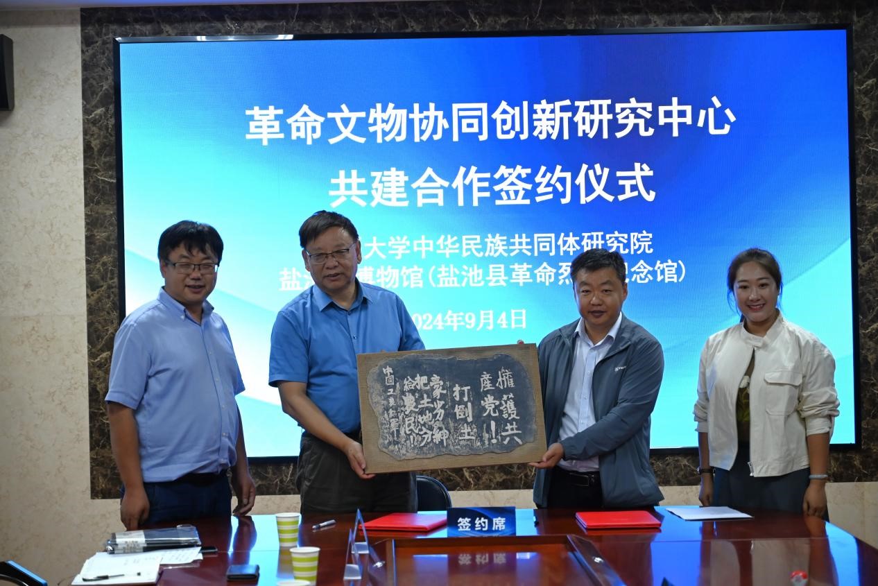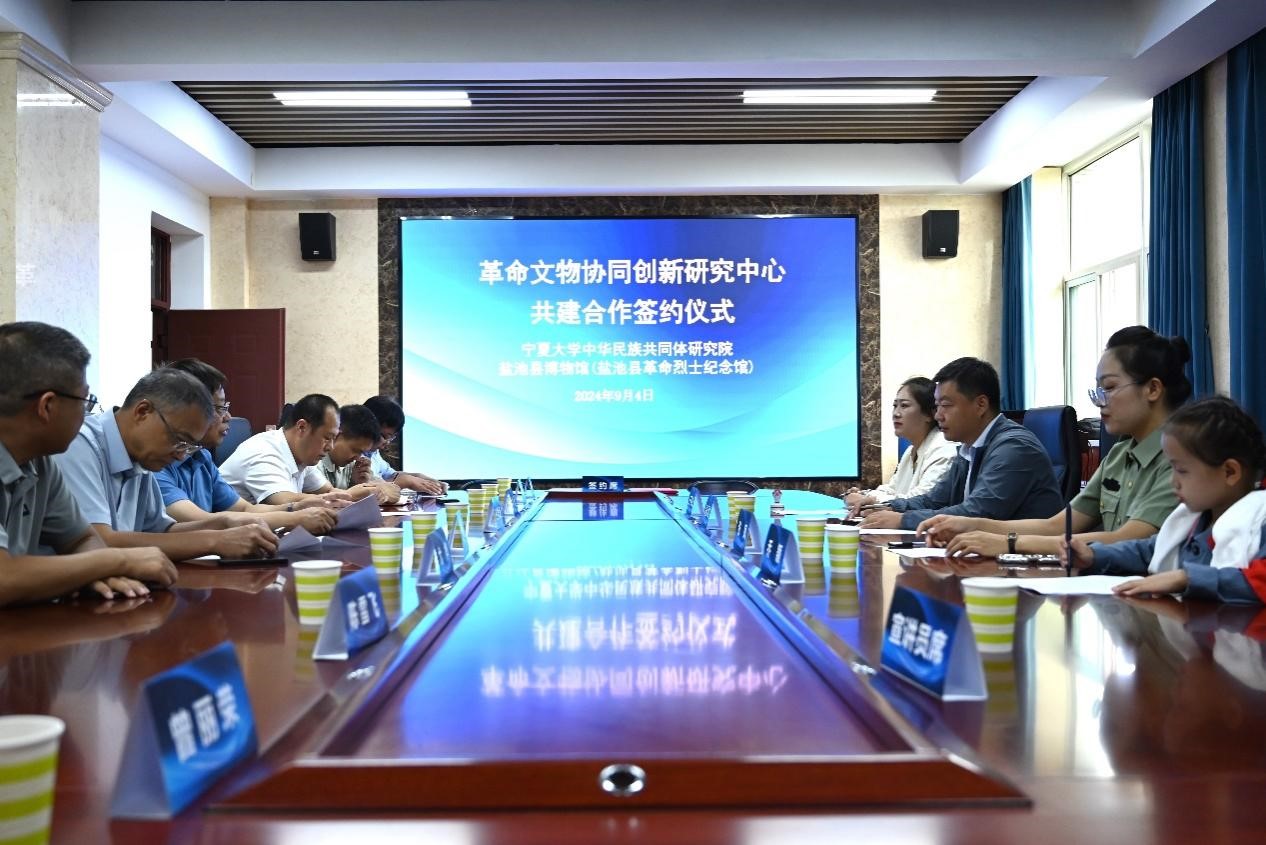 中华民族共同体研究院与盐池县博物馆(盐池县革命烈士纪念馆)签署共建革命文物协同创新研究中心,对于进一步深化馆校合作,推动革命文物保护利用走深走实,搭建起了更高的平台。”