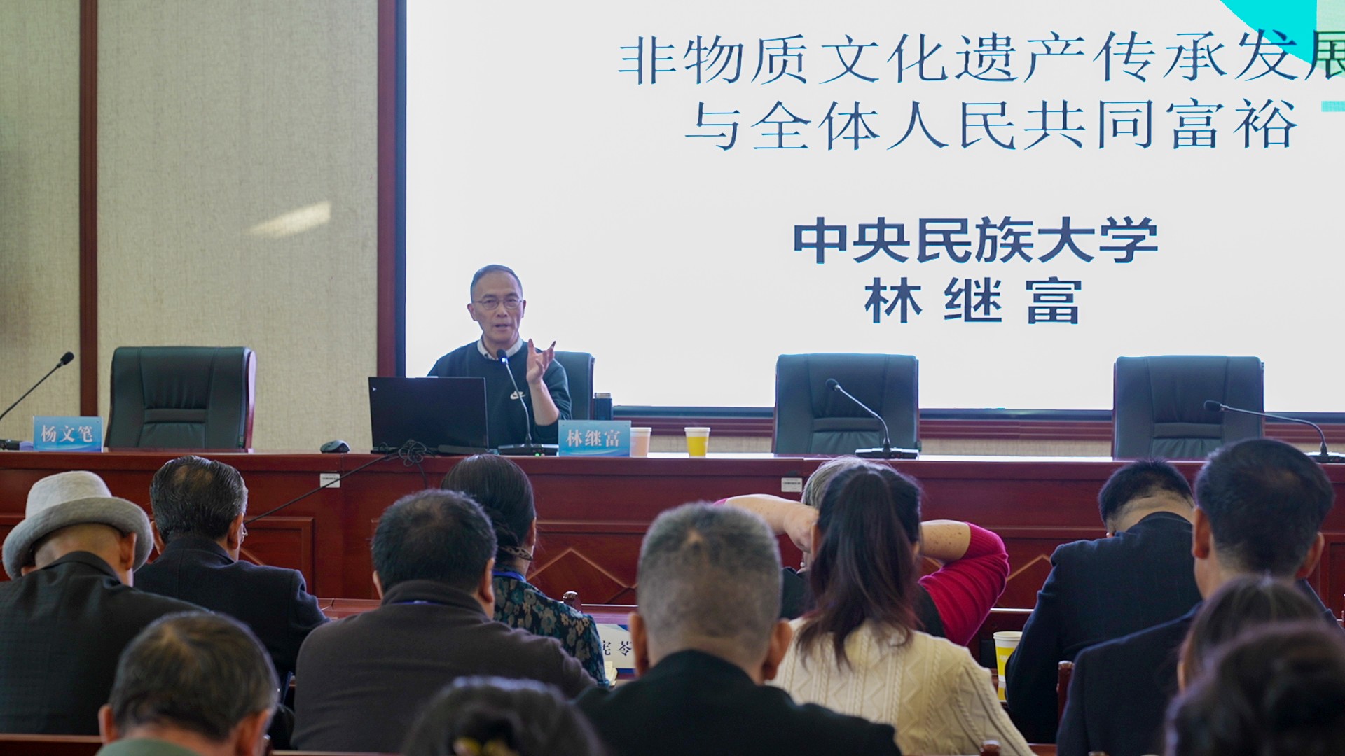 10月27日上午中央民族大学教授、博士生导师、文化和旅游部“文化和旅游研究基地”首席专家林继富以《非物质文化遗产传承发展与全体人民共同富裕》为题进行了开班第一讲。